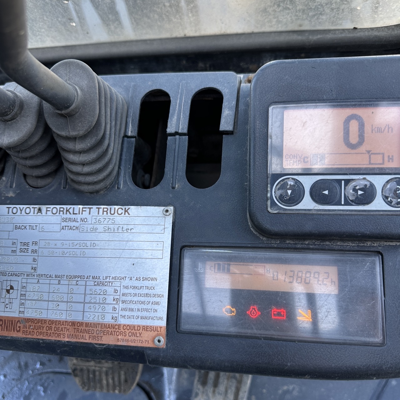 Forklift Toyota 8FGU30. Année 2013 avec 13900 heures.